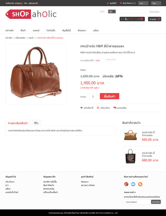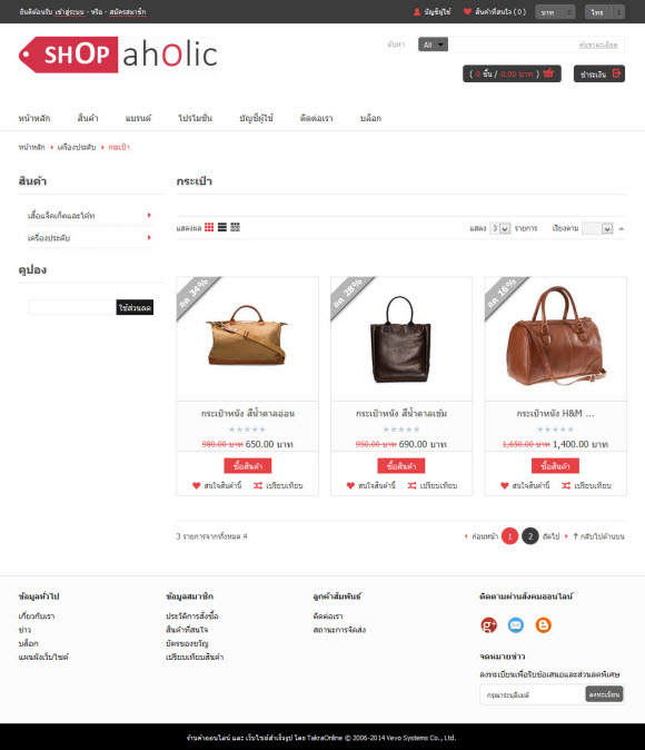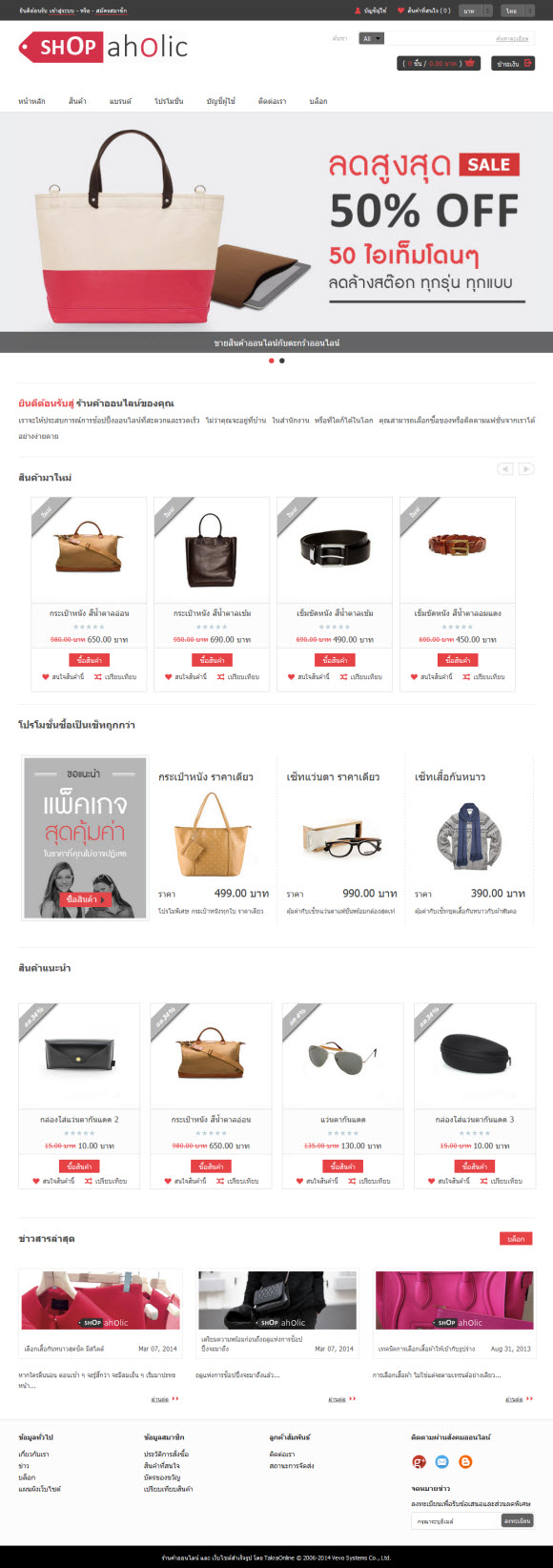 ก้าวสู่ความโมเดิร์นไปพร้อมกับรูปแบบร้านค้า “Sassy” ขาว-ดำ-แดง สามส่วนผสมแห่งสีสันที่รวมเข้าด้วยกันเป็นอย่างดี ส่งให้ร้านค้าออนไลน์ของคุณดูเก๋ไก๋ ทันสมัย ไม่ซ้ำใคร